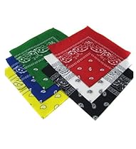 6 Pack Of Assorted Colors. These bandanas are high quality and double printed. 100% Cotton. Sewn on all 4 Sides. Vibrant color. Can be worn over the face or on head. Great for Parties,Decorations.
